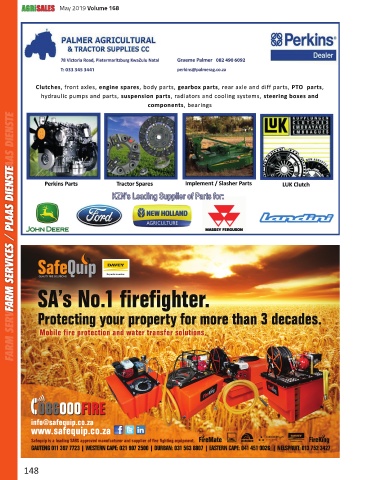 May 2019 Volume 168 㠀㈀ 㐀㤀 㘀 㤀㈀ 吀㨀 ㌀㌀ ㌀㐀㔀 ㌀㐀㐀 PLAAS DIENSTE FARM SERVICES FARM SERVICES / PLAAS DIENSTE 148