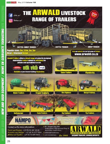 May 2019 Volume 168 E EN GEBRUIKTE TOERUSTING NEW AND USED EQUIPMENT / NUWE EN GEBRUIKTE TOERUSTING NEW AND USED EQUIPMENT / NUWE 26