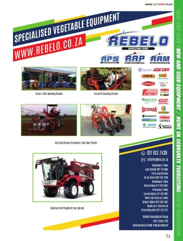 www.agrisales.co.za NEW AND USED EQUIPMENT / NUWE 71 NEW AND USED EQUIPMENT / NUWE EN GEBRUIKTE TOERUSTING E EN GEBRUIKTE TOERUSTING