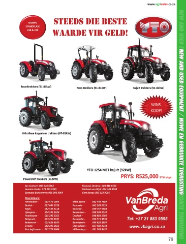 www.agrisales.co.za NEW AND USED EQUIPMENT / NUWE 79 NEW AND USED EQUIPMENT / NUWE EN GEBRUIKTE TOERUSTING E EN GEBRUIKTE TOERUSTING