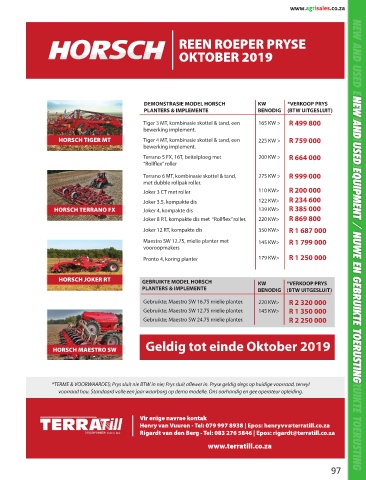 DEMONSTRASIE MODEL HORSCH KW *VERKOOP PRYS NEW AND USED EQUIPMENT / NUWE