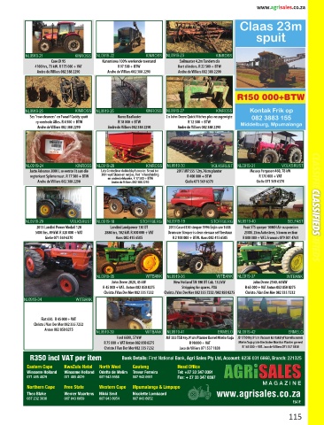 R350 incl VAT per item Bank Details: First National Bank, Agri Sales Pty Ltd, Account: 6236 031 6668, Branch: 221325 CLASSIFIEDS
