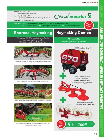 Call us today! or visit www.staalmeester.co.za Haymaking Combo Upgrade & XL