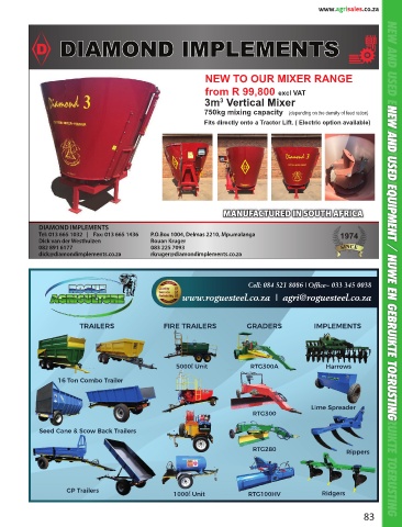 dick@diamondimplements.co.za rkruger@diamondimplements.co.za NEW AND USED EQUIPMENT / NUWE EN GEBRUIKTE TOERUSTING