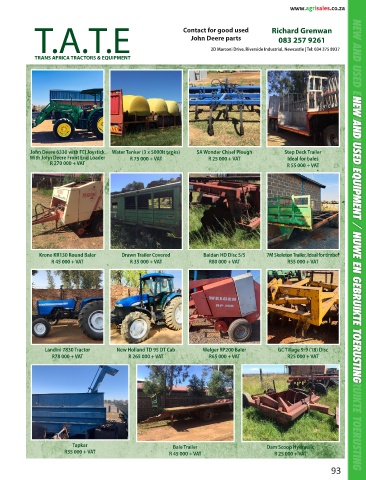 TRANS AFRICA TRACTORS & EQUIPMENT 2D Marconi Drive, Riverside Industrial, Newcastle | Tel: 034 375 8937 NEW AND USED EQUIPMENT / NUWE