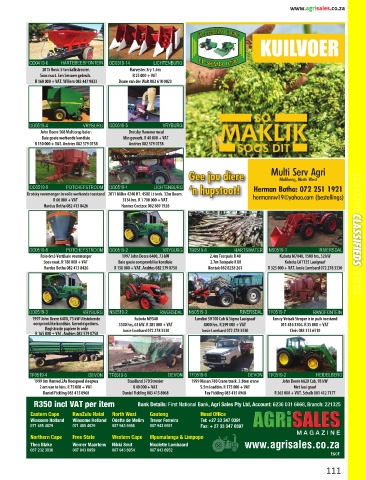 R350 incl VAT per item Bank Details: First National Bank, Agri Sales Pty Ltd, Account: 6236 031 6668, Branch: 221325 CLASSIFIEDS