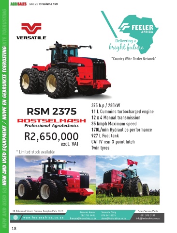 June 2019 Volume 169 E EN GEBRUIKTE TOERUSTING NEW AND USED EQUIPMENT / NUWE EN GEBRUIKTE TOERUSTING NEW AND USED EQUIPMENT / NUWE 18