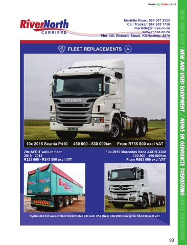www.agrisales.co.za NEW AND USED EQUIPMENT / NUWE 93 NEW AND USED EQUIPMENT / NUWE EN GEBRUIKTE TOERUSTING E EN GEBRUIKTE TOERUSTING