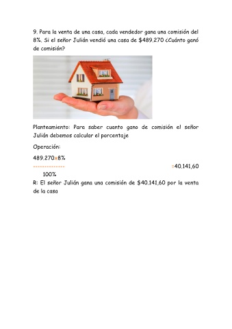 9. Para la venta de una casa, cada vendedor gana una comisión del