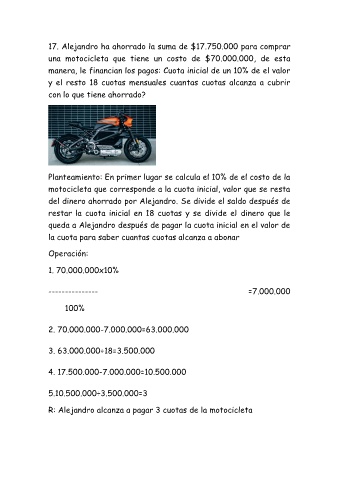 17. Alejandro ha ahorrado la suma de $17.750.000 para comprar