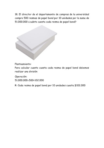 Para calcular cuanto cuesta cada resma de papel bond debemos