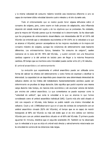 consumo máximo de oxígeno, aunque los volúmenes de entrenamiento sean bastante