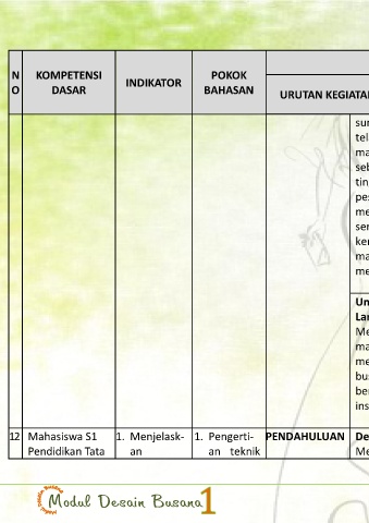 12 Mahasiswa S1 1. Menjelask- 1. Pengerti- PENDAHULUAN Deskripsi Singkat: Ceramah - LCD Fashion