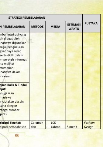 12 Mahasiswa S1 1. Menjelask- 1. Pengerti- PENDAHULUAN Deskripsi Singkat: Ceramah - LCD Fashion