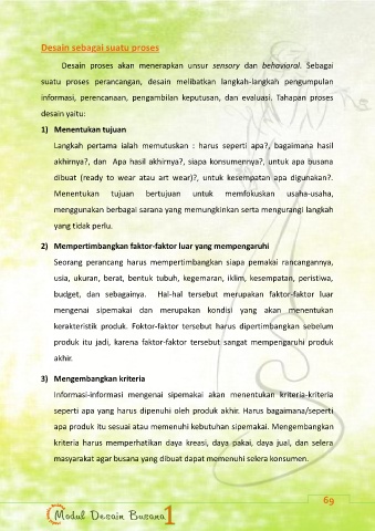 Desain proses akan menerapkan unsur sensory dan behavioral. Sebagai