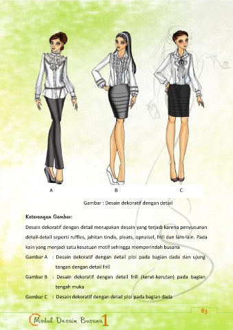 detail-detail seperti ruffles, jahitan tindis, pleats, opnaisel, frill dan lain-lain. Pada