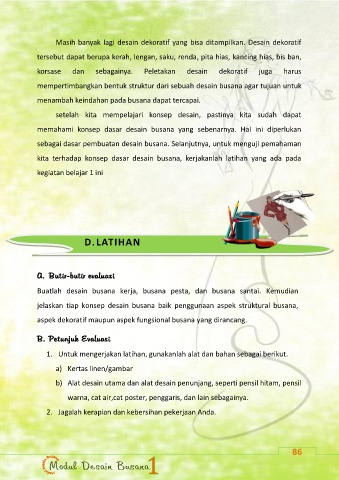 aspek dekoratif maupun aspek fungsional busana yang dirancang.