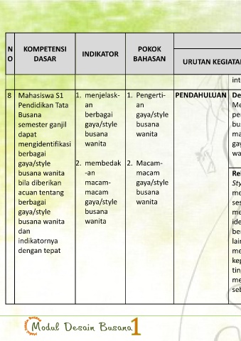 8 Mahasiswa S1 1. menjelask- 1. Pengerti- PENDAHULUAN Deskripsi Singkat: Ceramah - LCD 5 menit Fashion