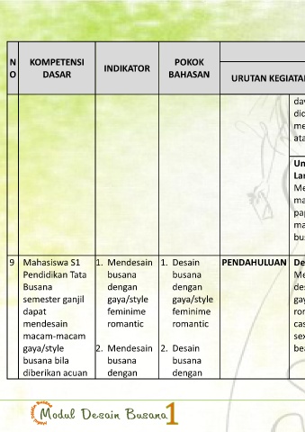 9 Mahasiswa S1 1. Mendesain 1. Desain PENDAHULUAN Deskripsi Singkat: Ceramah - LCD 5 menit Fashion