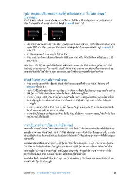 สำาหรับข้อมูลเกี่ยวกับการชาร์จ iPad ให้ดูที่ แบตเตอรี่ ที่หน้า 33