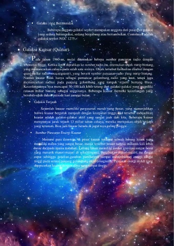 kuasar adalah galaksi-galaksi aktif yang sangat jauh dari kita. Beberapa kuasar