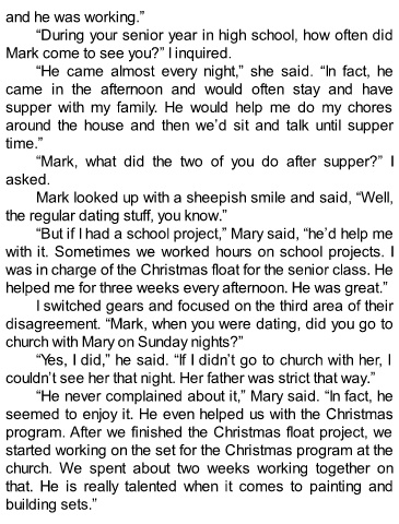 disagreement. “Mark, when you were dating, did you go to