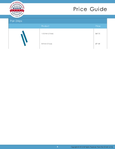 Price Guide Pan Strips Product Price 1-2.5 ton (12 ea) $47.75 3-5 ton (12 ea) $71.50 9 Copyright © 2018 All Rights Reserved. Form No AD-502 (5/18)