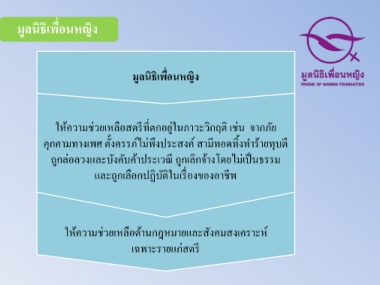 ให้ความช่วยเหลือสตรีที่ตกอยู่ในภาวะวิกฤติ เช่น จากภัย