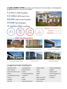 A GLOBAL BUSINESS CENTER Plano, Texas, located 19 miles north of downtown Dallas, is the fourth-largest city in