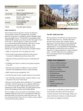 distribution, residential and retail activity in Southern Dallas. plan identifies the UNT-Dallas area as critically