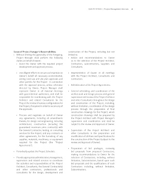 Scope of Project Manager’s Responsibilities construction of the Project, including but not
