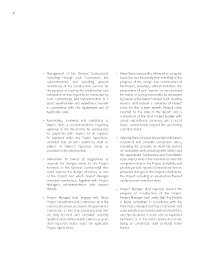 • Management of the General Contractor(s) • Keep Owner reasonably informed on a regular