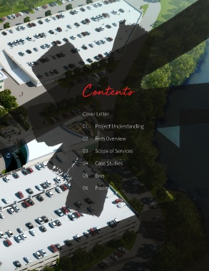 QUALIFICATIONS | Project Management Services 3 Contents Cover Letter 01 Project Understanding 02 Firm Overview 03 Scope of Services 04 Case Studies 05 Bios 06 Pricing