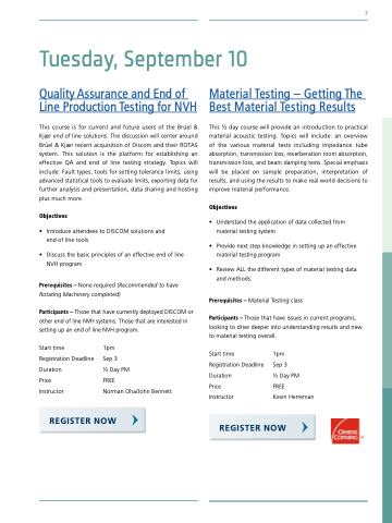 This 1⁄2 day course will provide an introduction to practical material acoustic testing Topics will include: an overview of the various material tests including impedance tube absorption absorption transmission loss reverberation room absorption absorption transmission loss and beam damping tests Special emphasis will be placed on