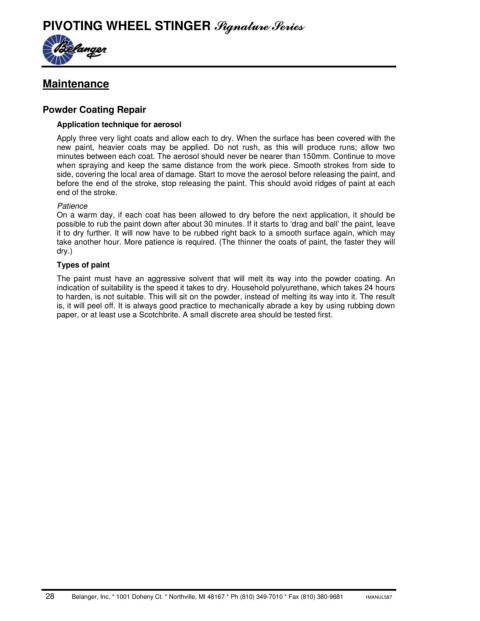 28 Belanger, Inc. * 1001 Doheny Ct. * Northville, MI 48167 * Ph (810) 349-7010 * Fax (810) 380-9681 1MANUL587