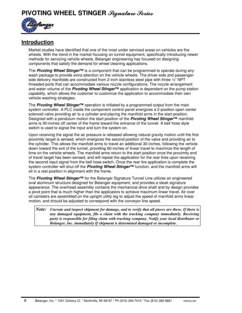 6 Belanger, Inc. * 1001 Doheny Ct. * Northville, MI 48167 * Ph (810) 349-7010 * Fax (810) 380-9681 1MANUL587