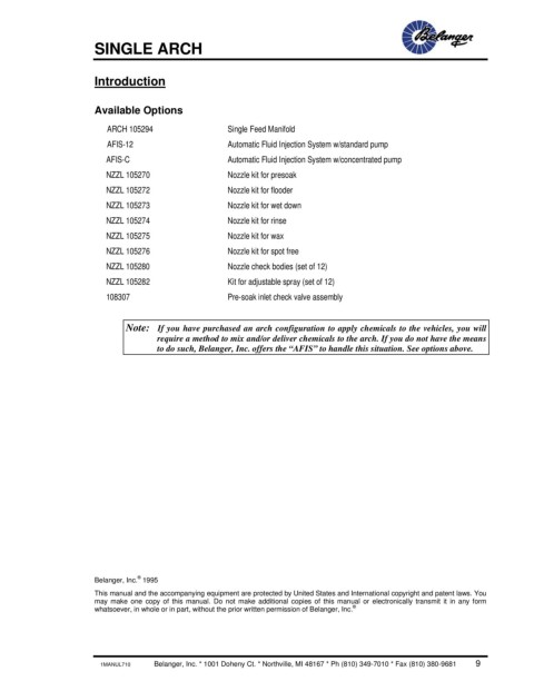 1MANUL710 Belanger, Inc. * 1001 Doheny Ct. * Northville, MI 48167 * Ph (810) 349-7010 * Fax (810) 380-9681 9