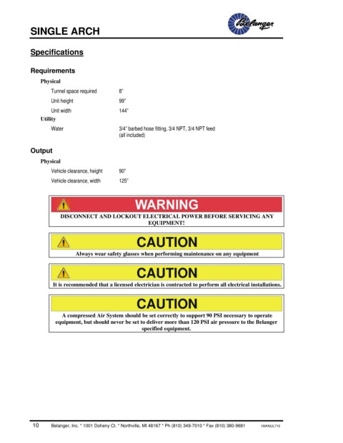 10 Belanger, Inc. * 1001 Doheny Ct. * Northville, MI 48167 * Ph (810) 349-7010 * Fax (810) 380-9681 1MANUL710