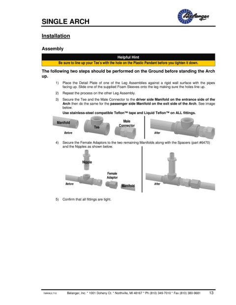 1MANUL710 Belanger, Inc. * 1001 Doheny Ct. * Northville, MI 48167 * Ph (810) 349-7010 * Fax (810) 380-9681 13
