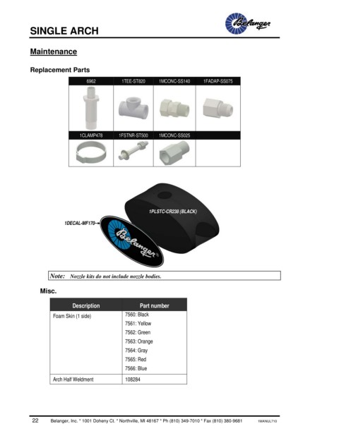 22 Belanger, Inc. * 1001 Doheny Ct. * Northville, MI 48167 * Ph (810) 349-7010 * Fax (810) 380-9681 1MANUL710