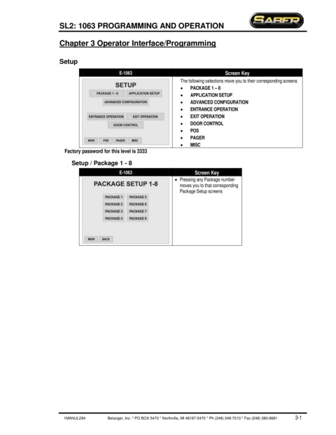 1MANUL294 Belanger, Inc. * PO BOX 5470 * Northville, MI 48167-5470 * Ph (248) 349-7010 * Fax (248) 380-9681 3-1