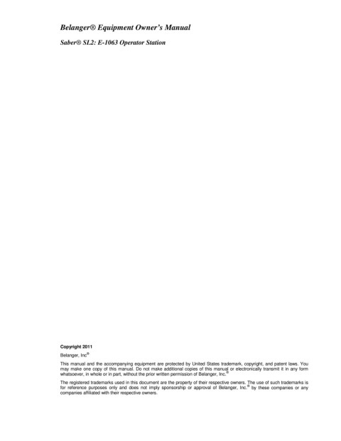 Belanger® Equipment Owner’s Manual