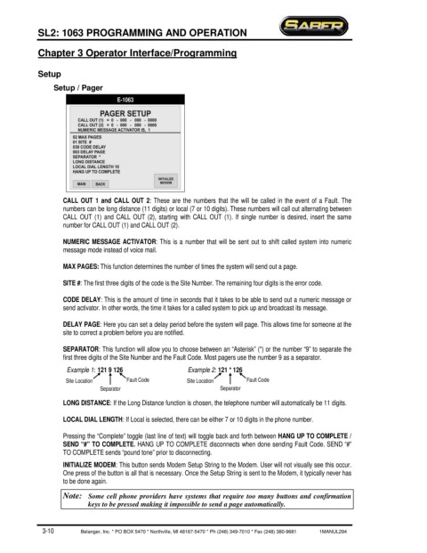 first three digits of the Site Number and the Fault Code. Most pagers use the number 9 as a separator.