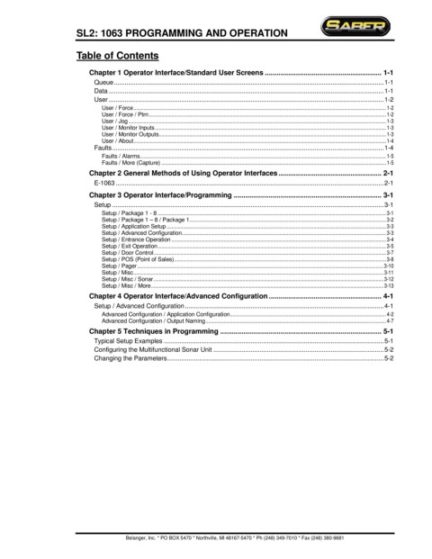 Page 7 - Saber® SL2 - E-1063 Programming and Operation Manual
