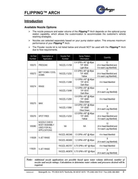 The Flooder nozzle kit is not listed below and should NOT be used with the Flipping™ Arch