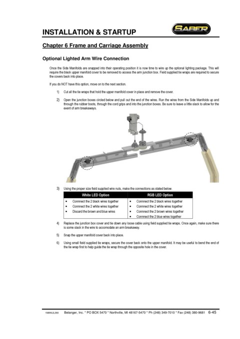 require the black upper manifold cover to be removed to access the arm junction box. Field supplied tie wraps are required to secure