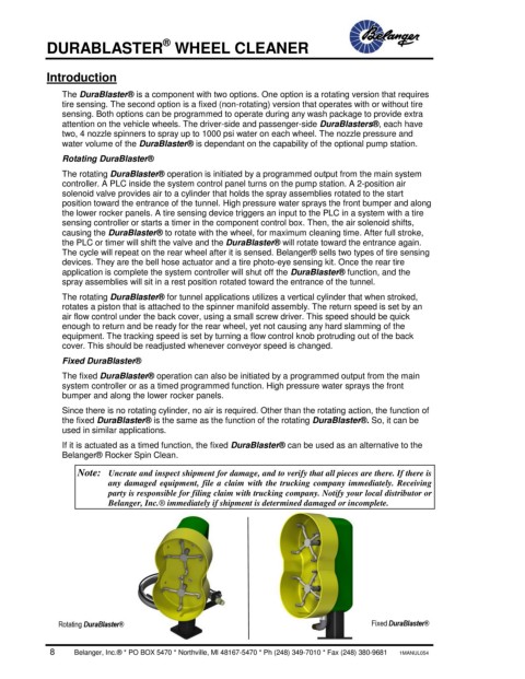 8 Belanger, Inc.® * PO BOX 5470 * Northville, MI 48167-5470 * Ph (248) 349-7010 * Fax (248) 380-9681 1MANUL054