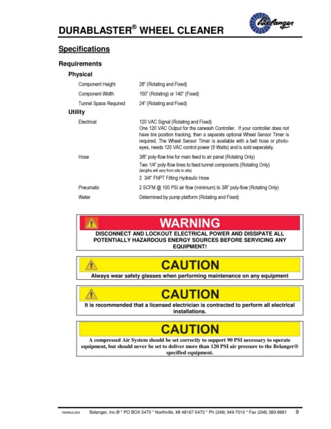1MANUL054 Belanger, Inc.® * PO BOX 5470 * Northville, MI 48167-5470 * Ph (248) 349-7010 * Fax (248) 380-9681 9