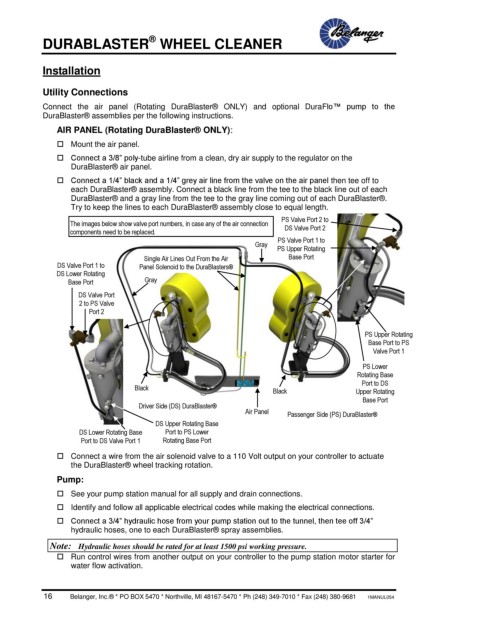 16 Belanger, Inc.® * PO BOX 5470 * Northville, MI 48167-5470 * Ph (248) 349-7010 * Fax (248) 380-9681 1MANUL054