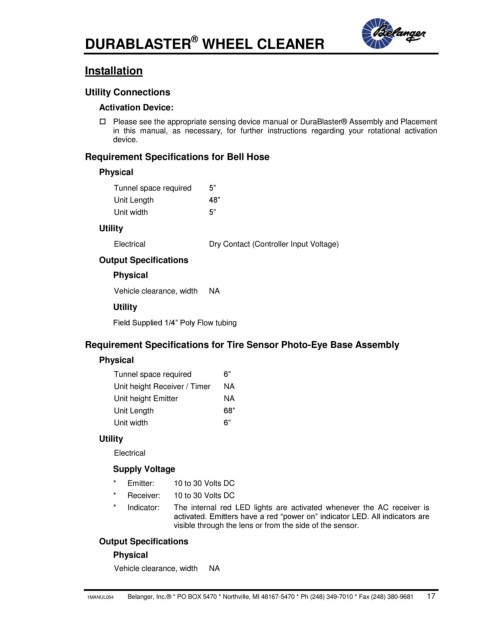 1MANUL054 Belanger, Inc.® * PO BOX 5470 * Northville, MI 48167-5470 * Ph (248) 349-7010 * Fax (248) 380-9681 17